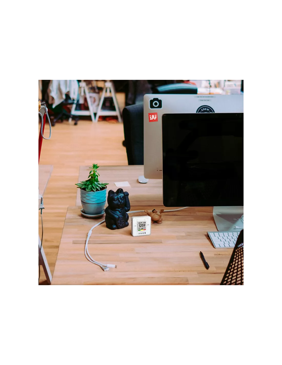 L’indicateur de CO2 Aranet4 HOME est un moniteur de qualité de l’air innovant qui mesure le niveau de CO2, la température, l’humidité relative et la pression atmosphérique simultanément.