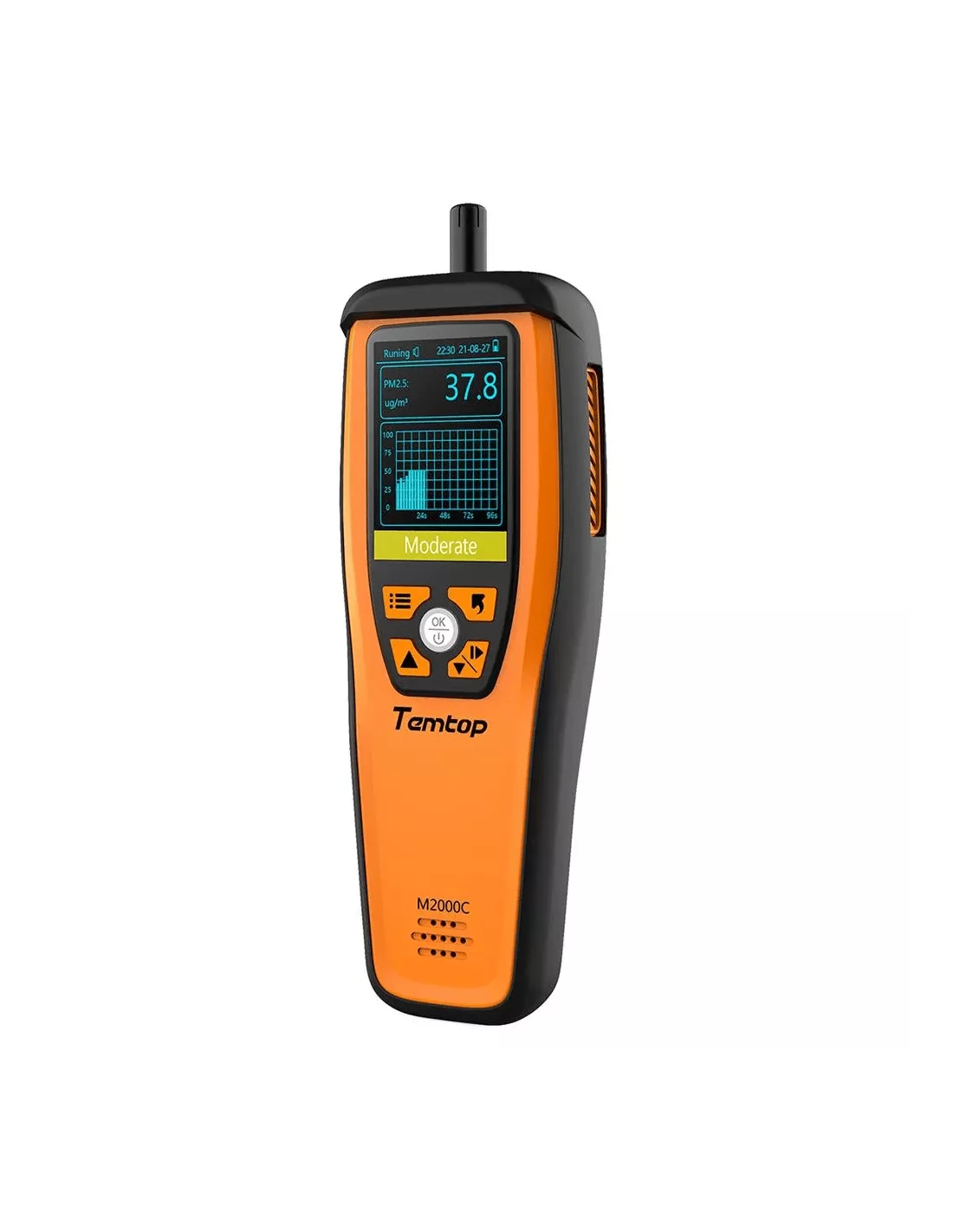 Le Temtop M2000C 2ème génération est un détecteur de qualité de l'air intérieur avancé, conçu pour mesurer et analyser les niveaux de particules PM2.5, PM10, le dioxyde de carbone (CO2), la température et l'humidité relative. Ce produit possède des fonctionnalités d'alarme sonore et d'exportation de données, ce qui en fait un outil polyvalent pour surveiller et améliorer la qualité de l'air intérieur.