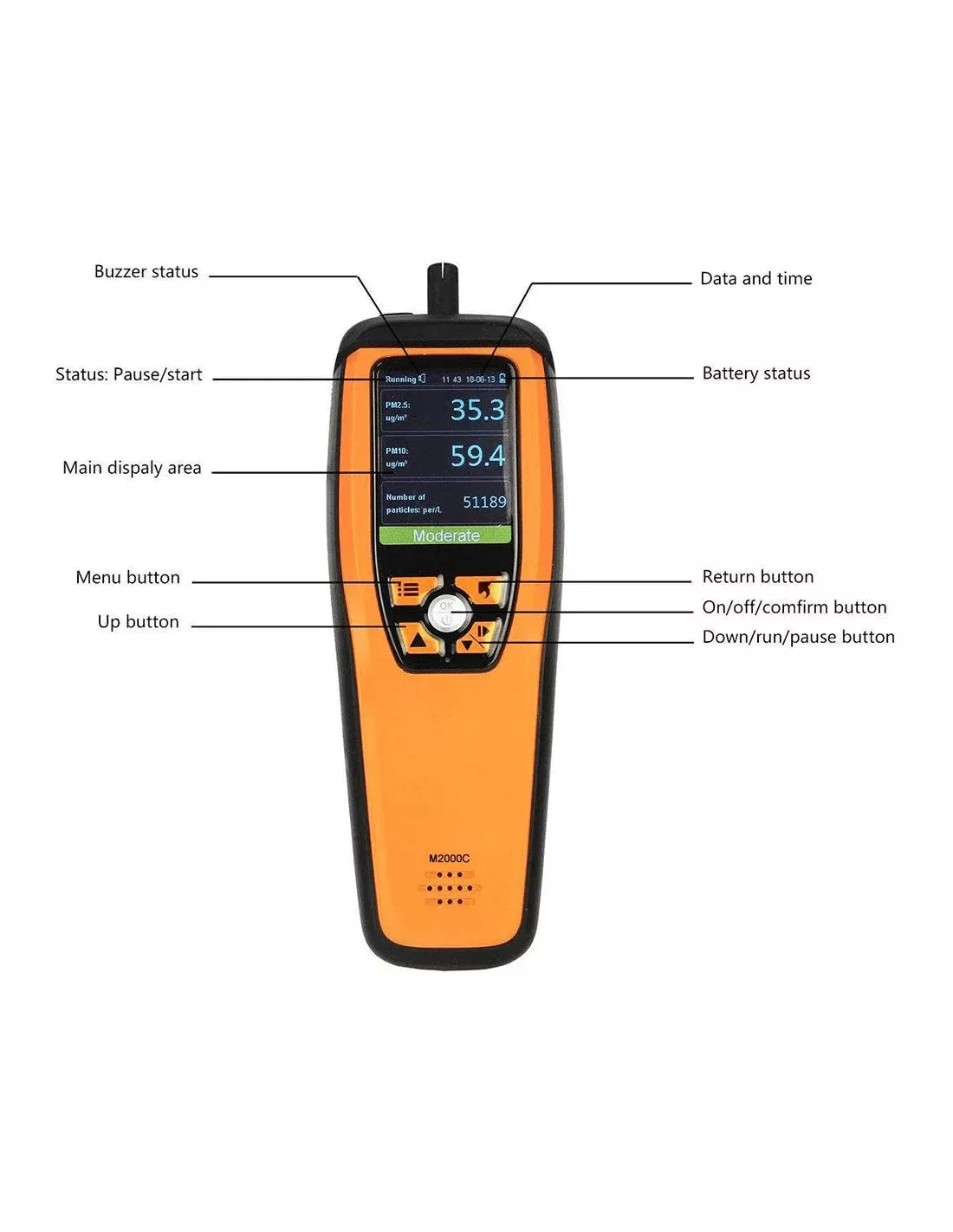 Le M2000C 2ème génération est équipé d'un écran LCD clair pour une lecture facile des données et d'une batterie rechargeable offrant une autonomie suffisante pour une utilisation continue. De plus, son capteur laser assure des mesures précises des particules en suspension dans l'air, tandis que le capteur NDIR (capteur infrarouge non dispersif) mesure les niveaux de CO2 avec une grande précision. Ces caractéristiques permettent une évaluation complète de l'environnement intérieur, aidant ainsi à maintenir des espaces de vie et de travail plus sains.