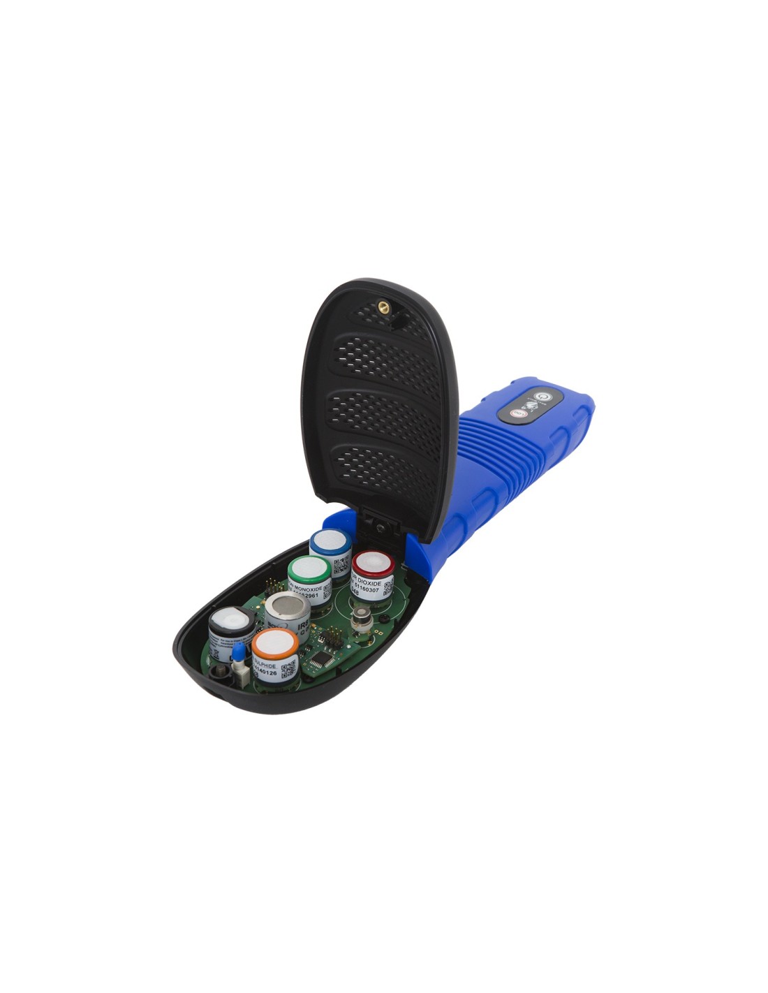 Les 6 emplacements disponibles sont dédiés aux capteurs de gaz, parmi lesquels les COV (Composés Organiques Volatils), CO2, CO, O3, NO2, NH3, O2, H2S, NO, SO2, Cl2, HCN, HF, HCl, H2, F2, ClO2, EtO, Formaldéhydes et d’autres gaz.