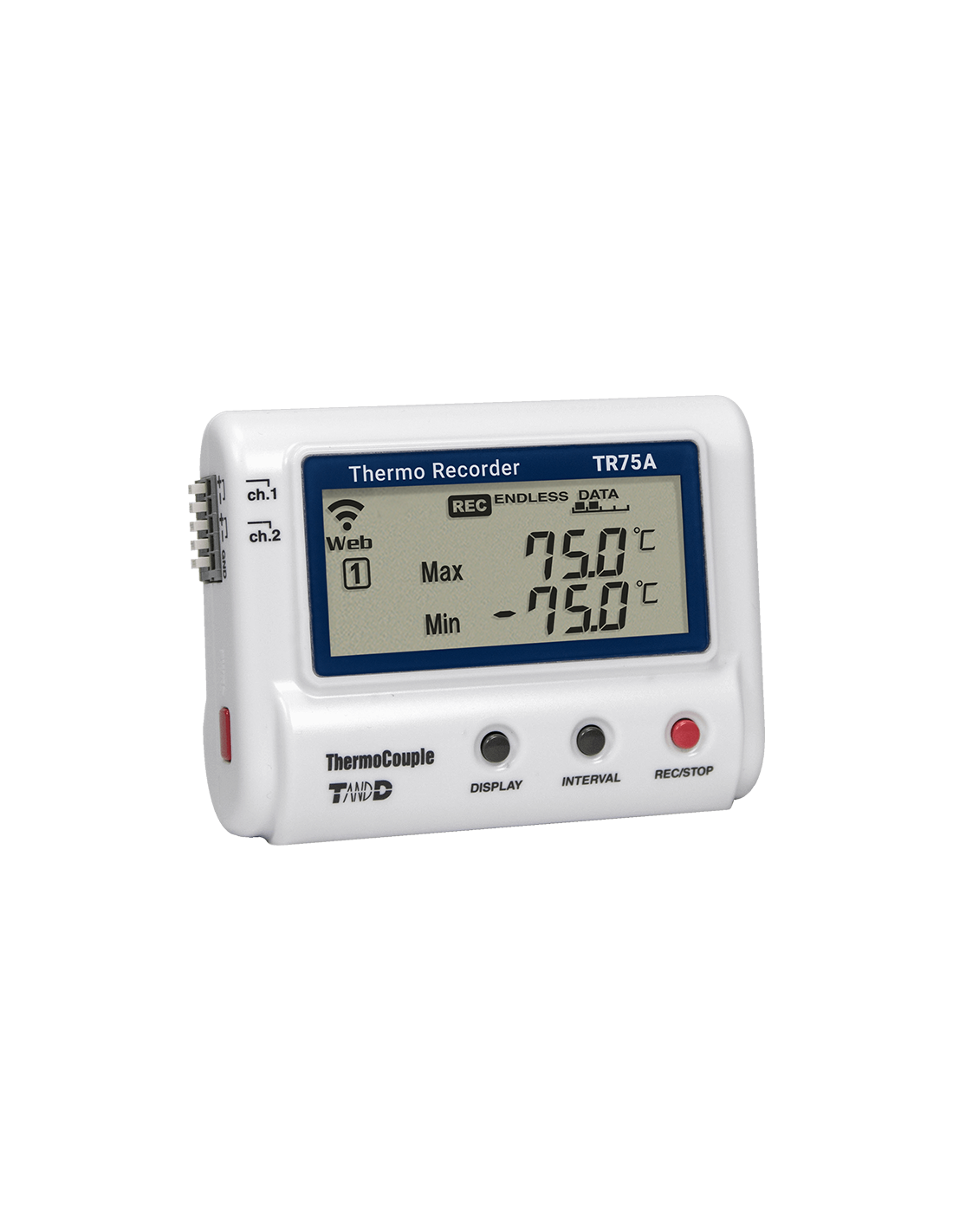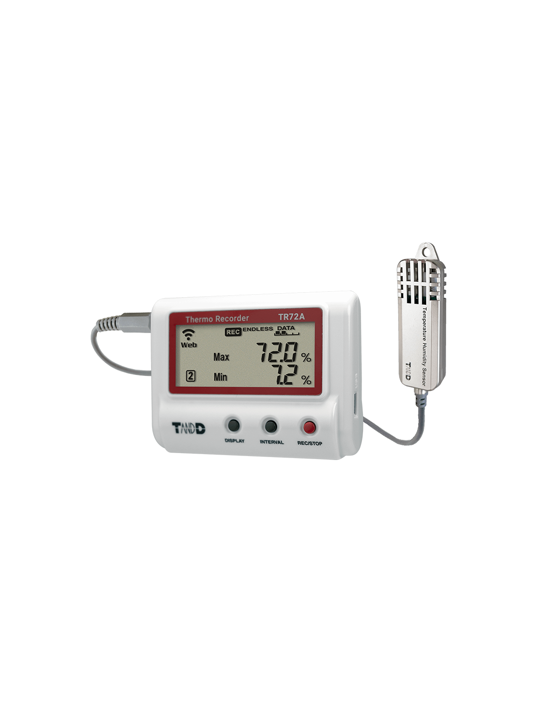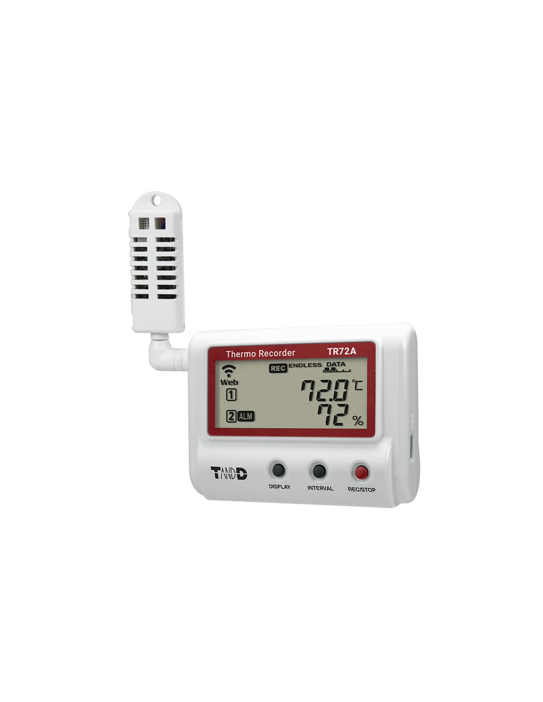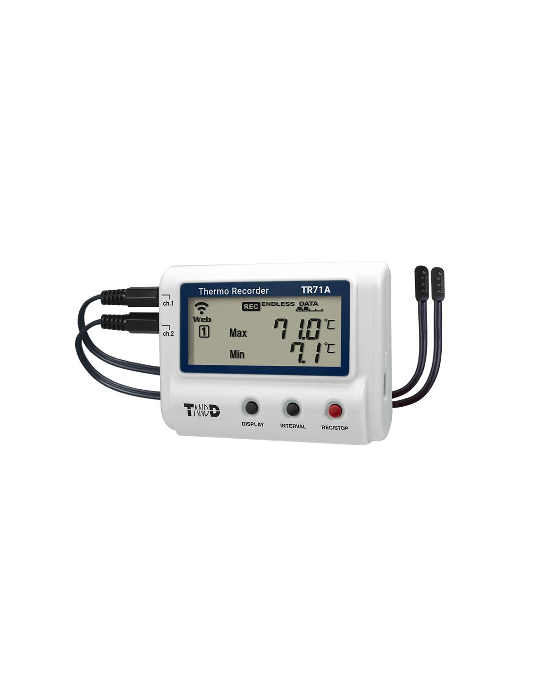 Le modèle TR71A, est un enregistreur de température avec deux connexions de capteurs disponibles. La large gamme de capteurs optionnels permet d'accroître la flexibilité des mesures.