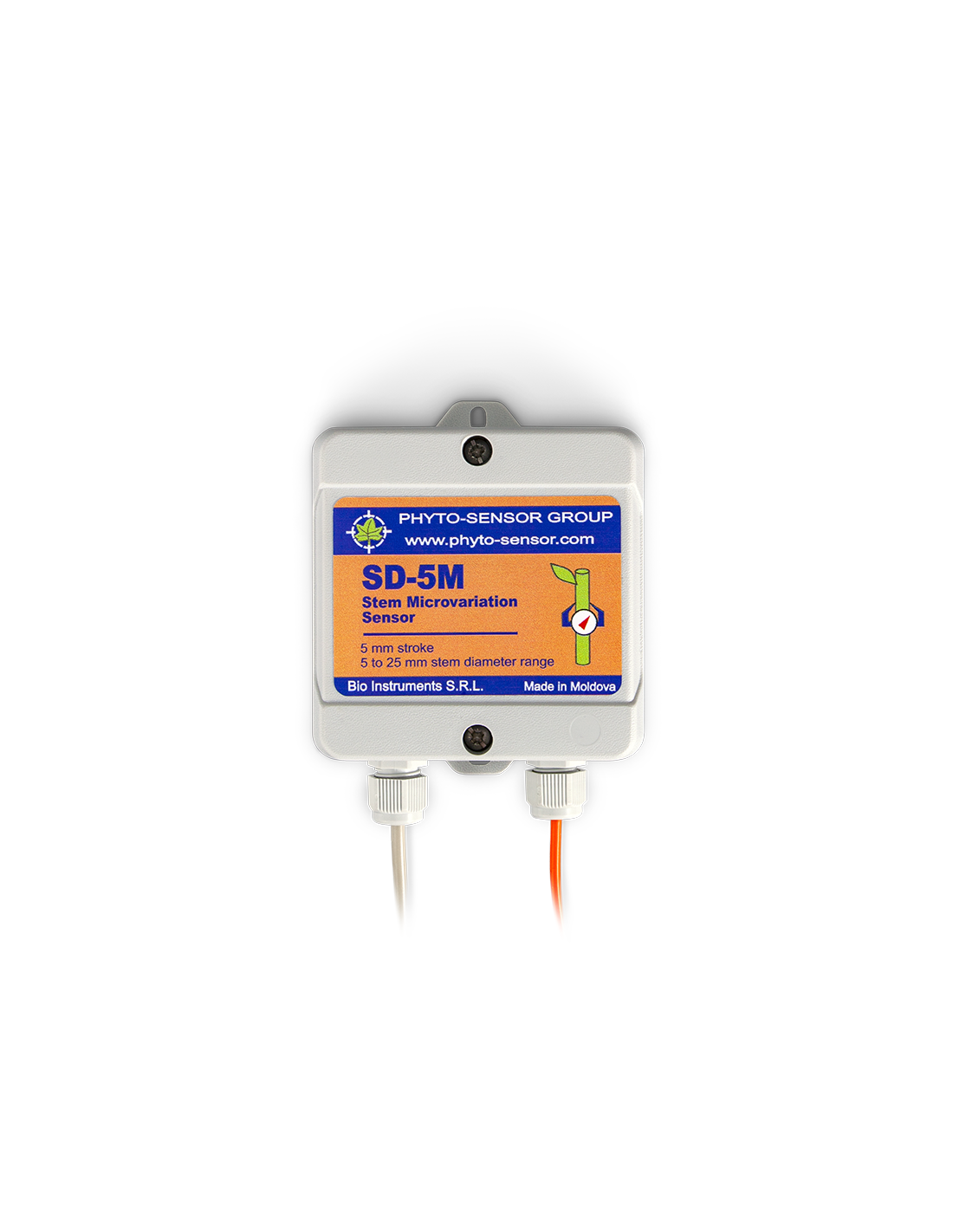 Le capteur (TDSPSD02) mesure les micro-variations de tige et permet d'étudier les effets du taux d'irrigation et d'autres facteurs environnementaux sur l'équilibre hydrique et la croissance des plantes.