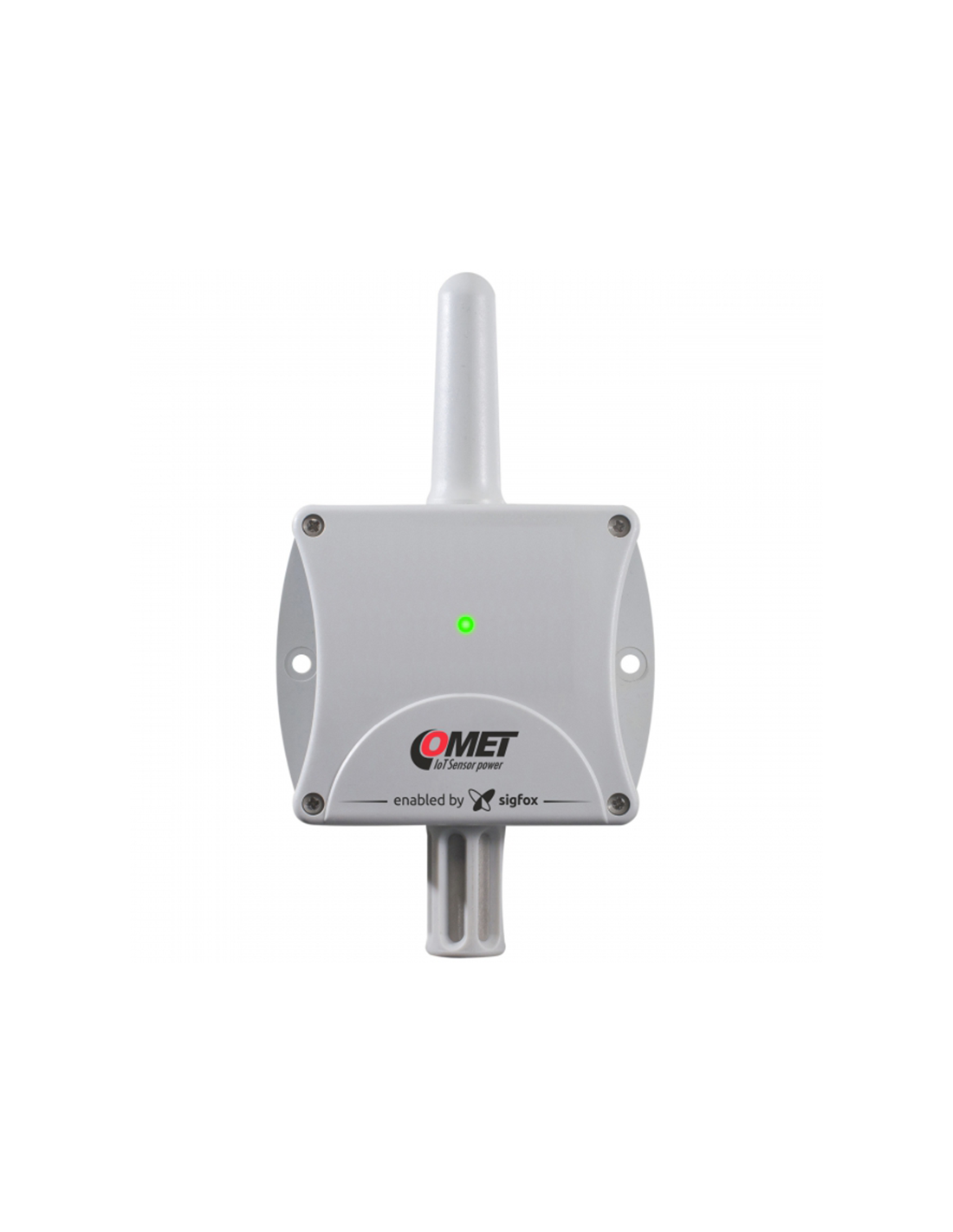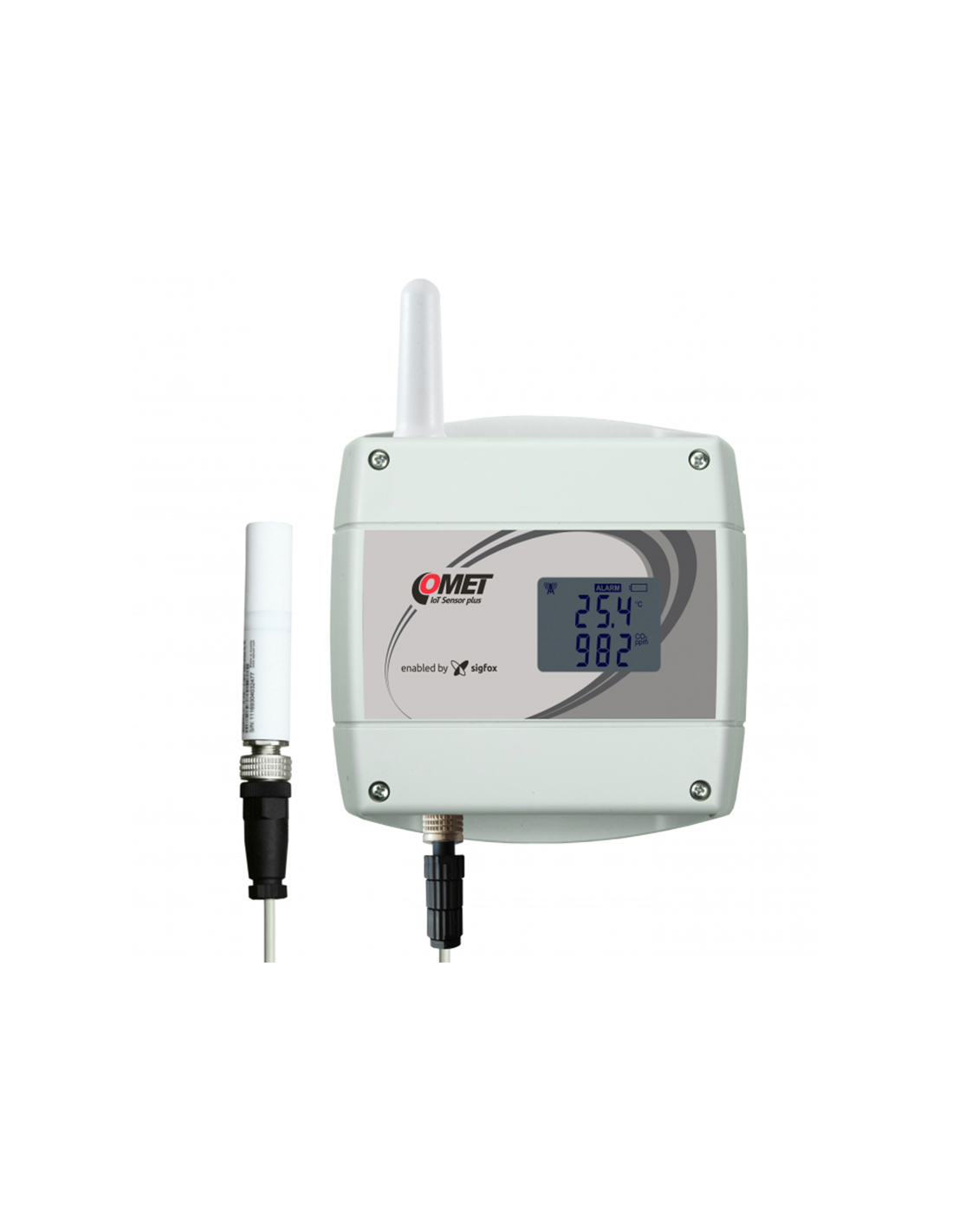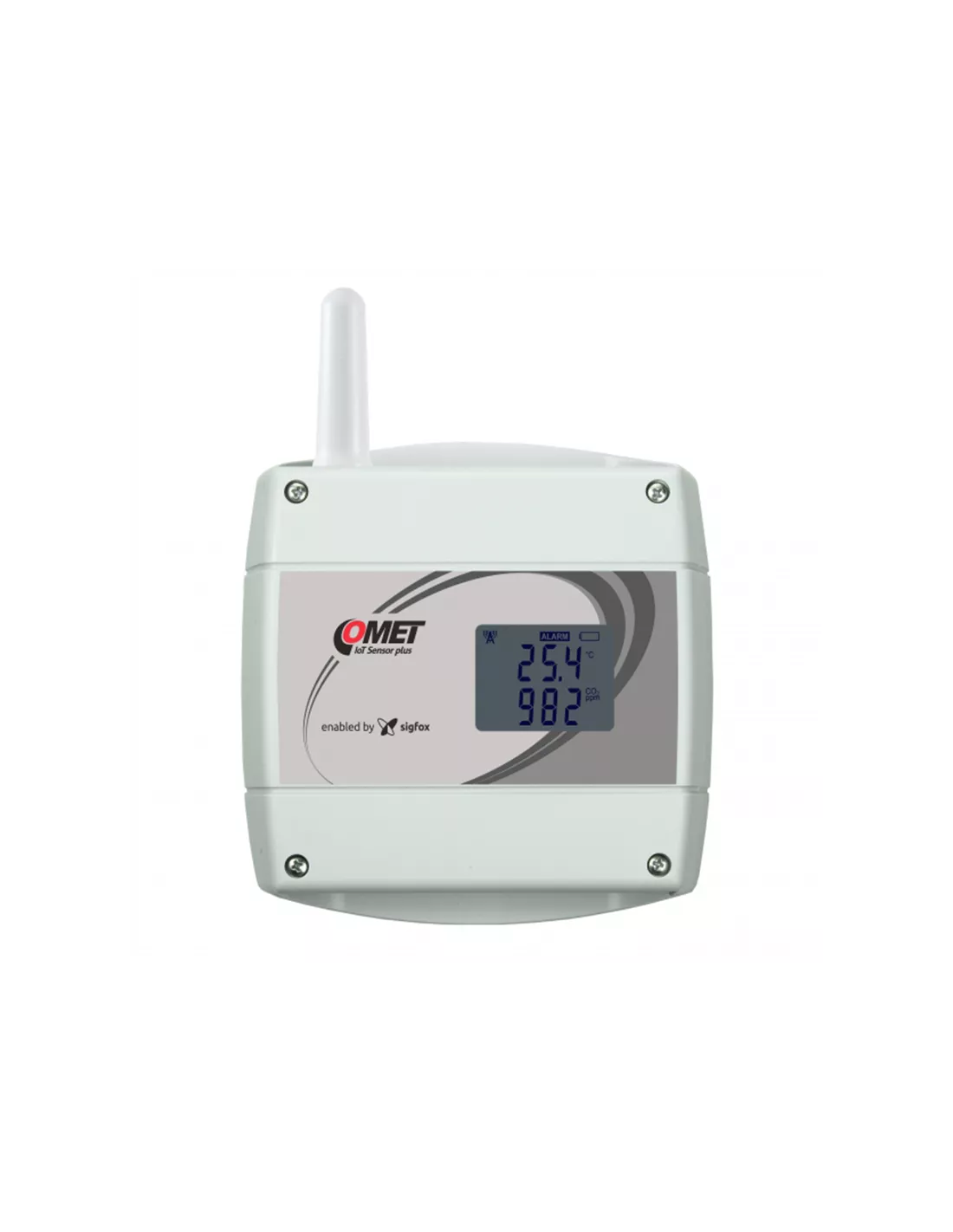 Les valeurs mesurées sont affichées sur l'écran LCD et sont envoyées sur un intervalle de temps réglable (entre 10 min à 24 heures) par transmission radio dans le réseau SIGFOX et donc dans le Comet Cloud.
