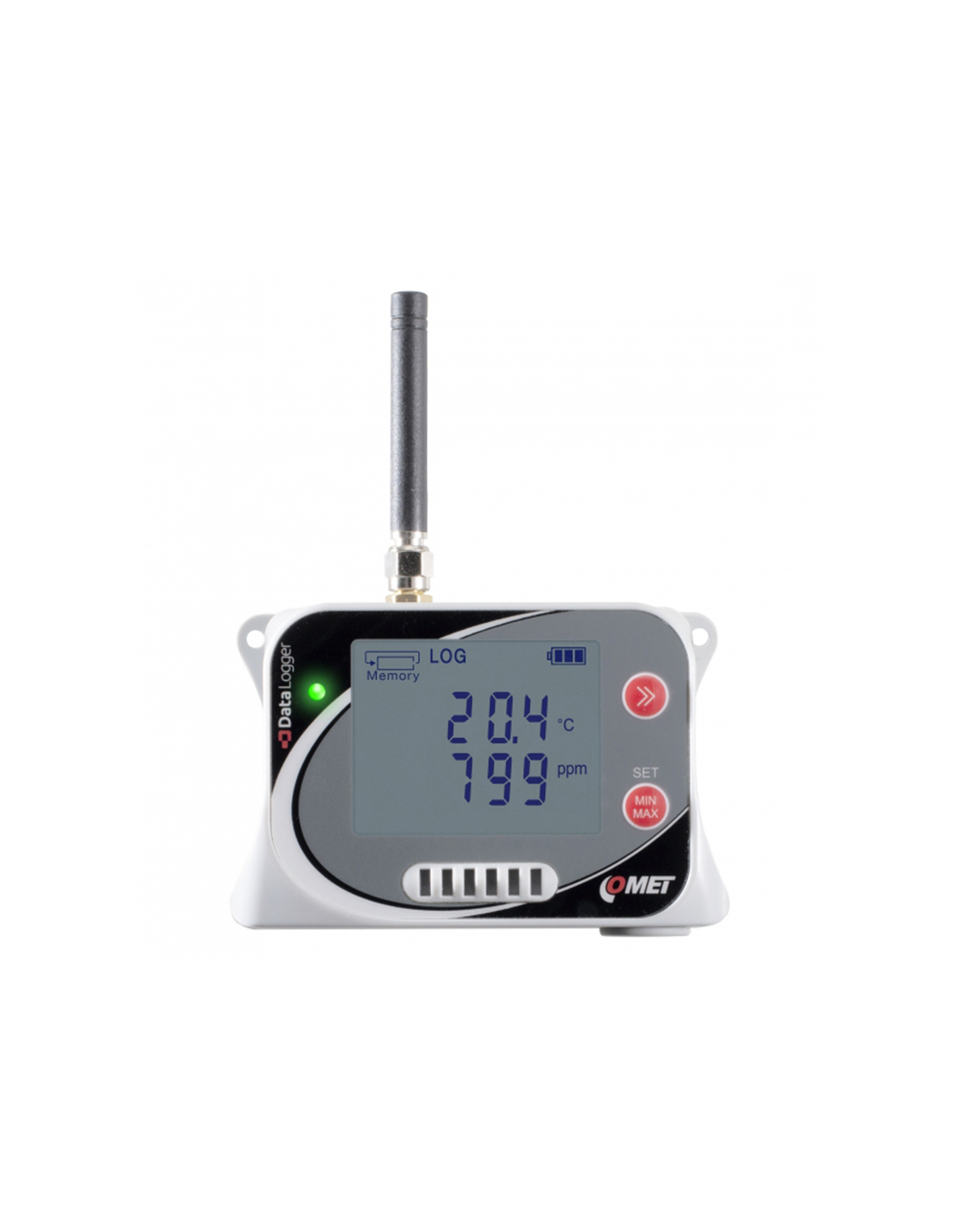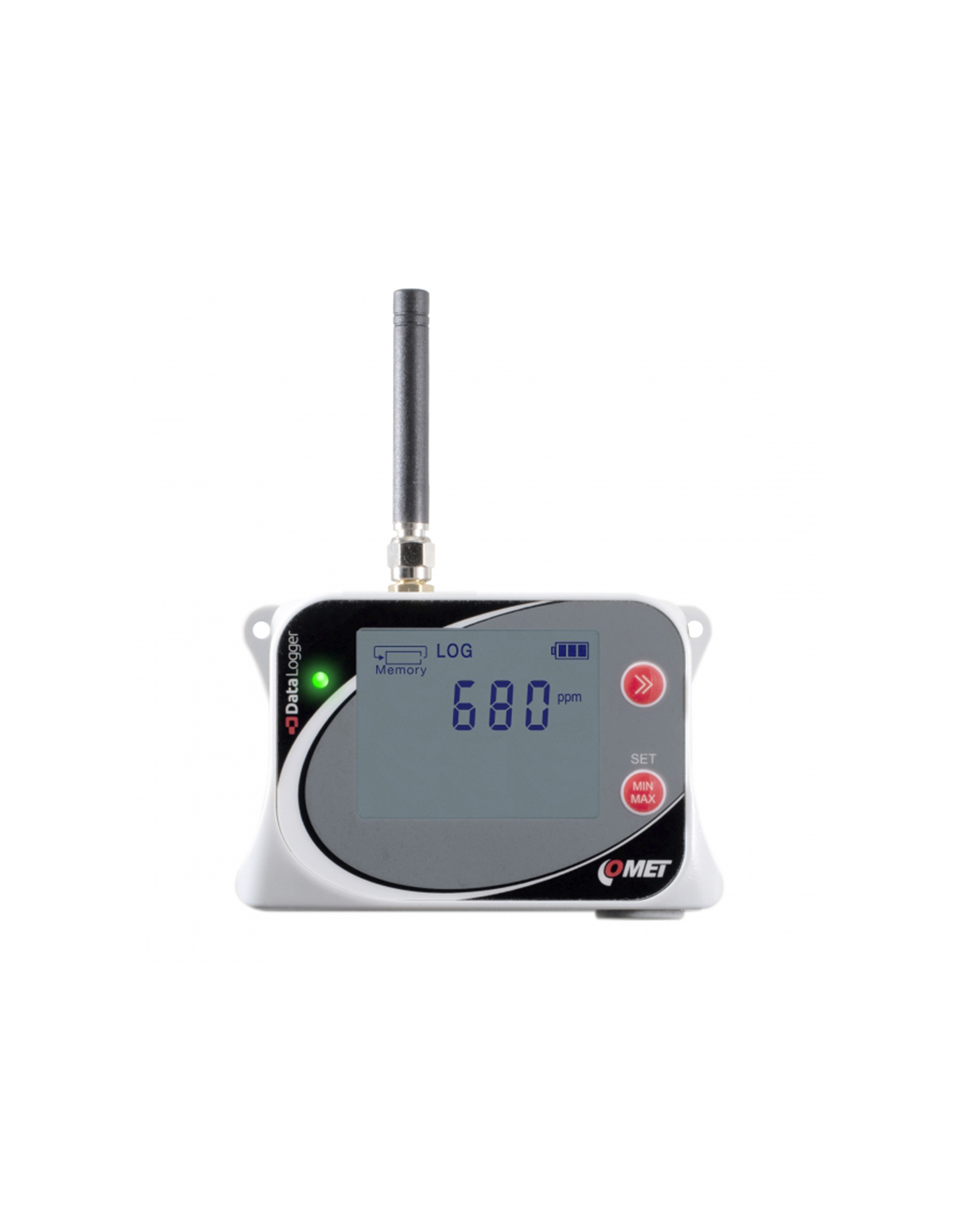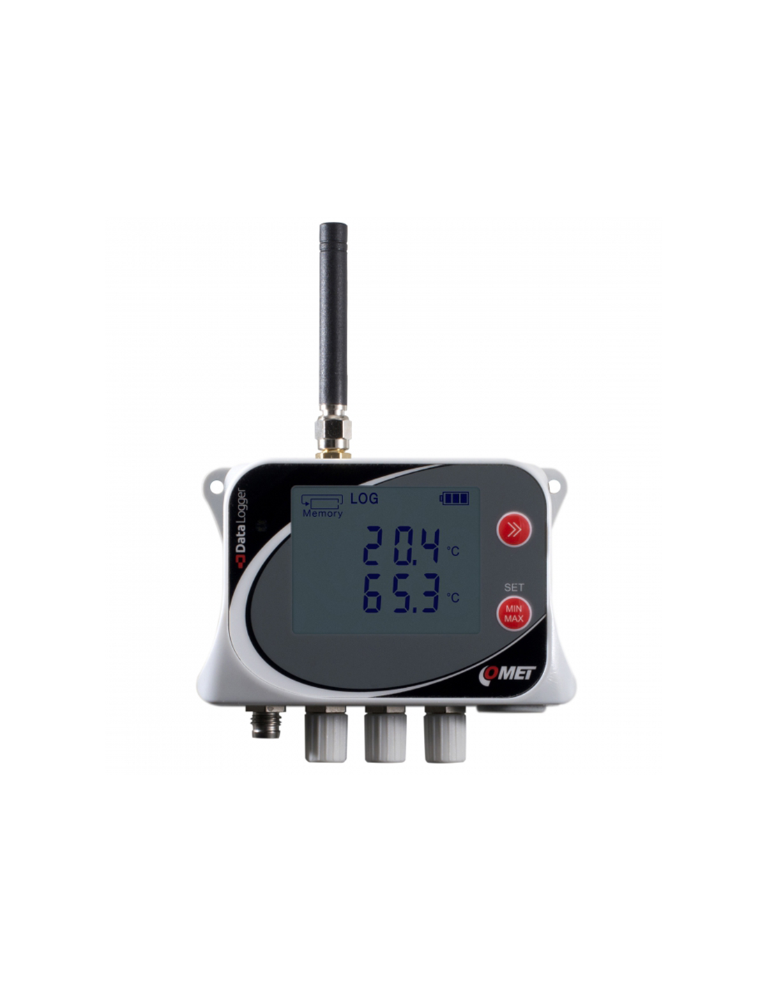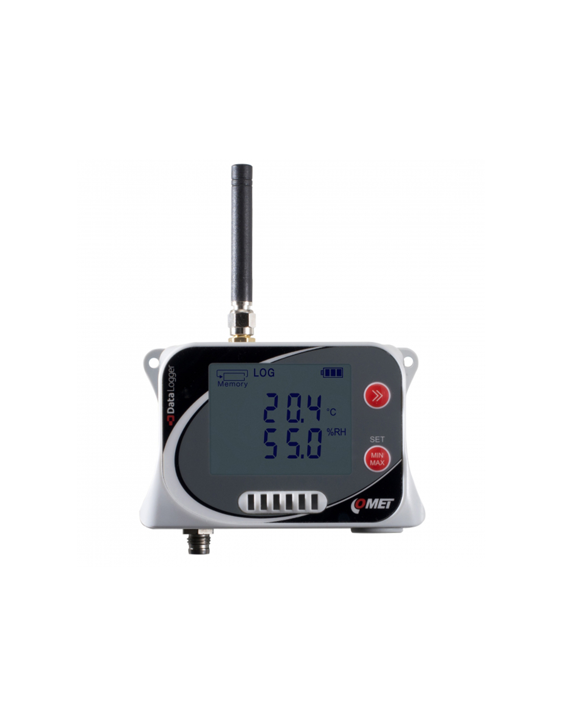 Le modem GSM intégré, fonctionne sur batterie, permet d'indiquer les alarmes et de transmettre des données. Les données peuvent être envoyées dans le plus court intervalle de 5 minutes au logiciel Comet Database ou au Comet Cloud via le réseau de données.