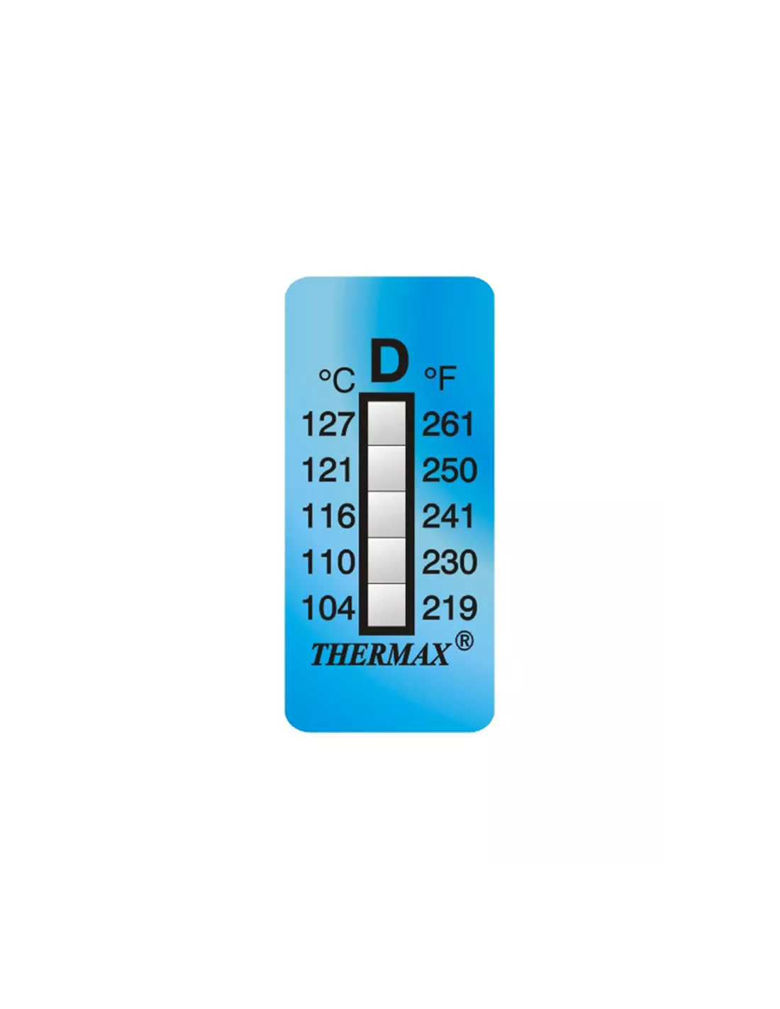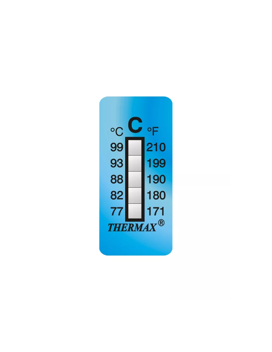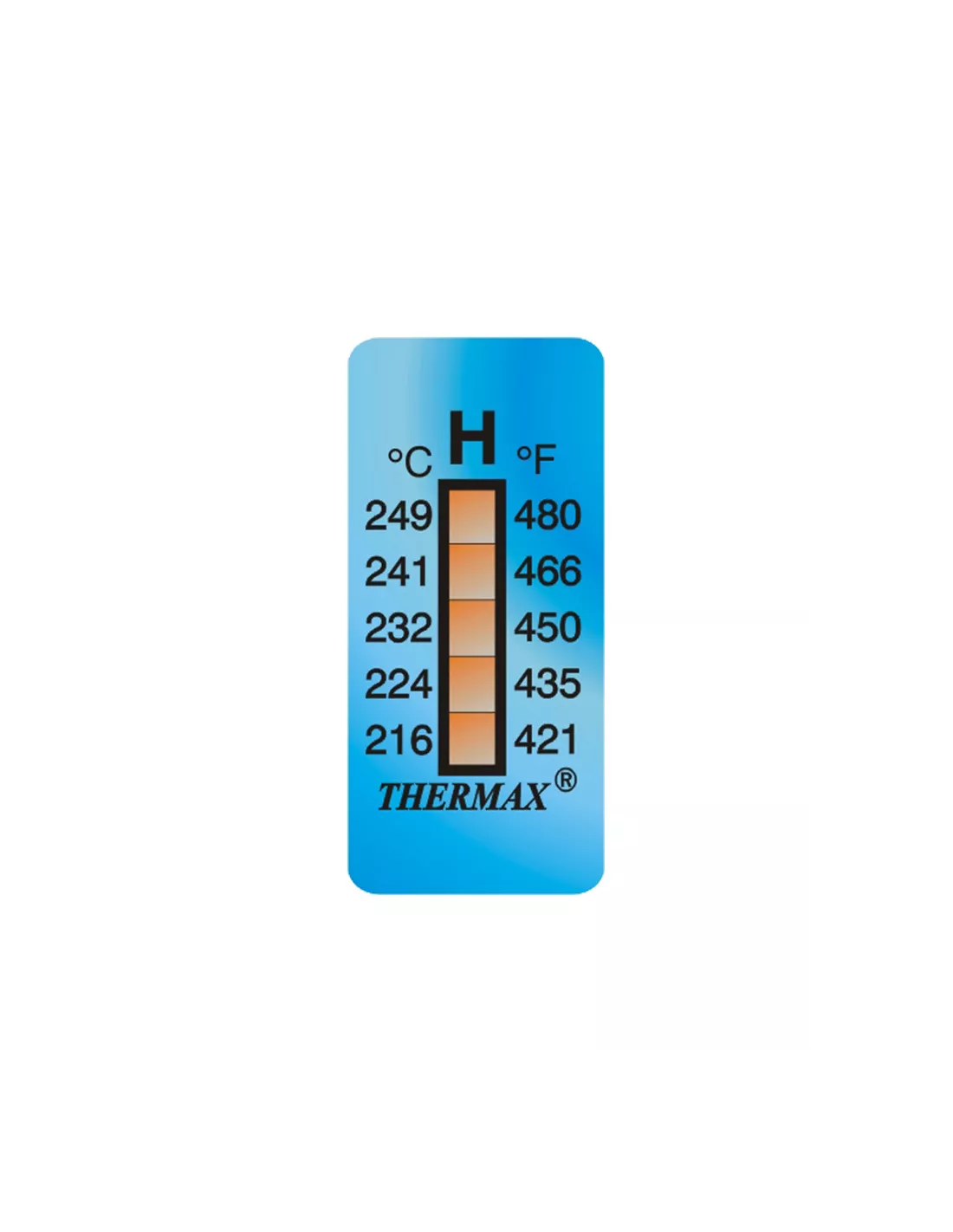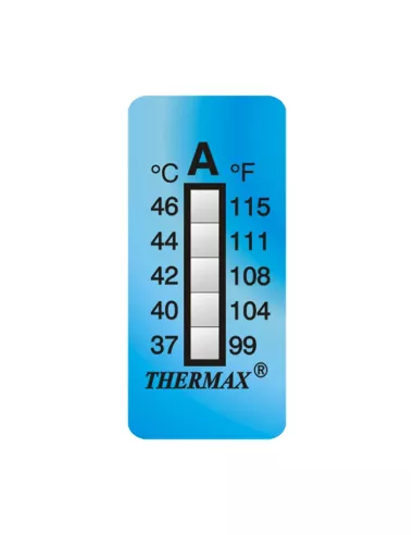 Les rubans irréversibles thermosensibles à 5 températures THERMAX se présentent sous forme d'étiquettes autocollantes verticales. Chaque étiquette possède plusieurs paliers et indique de manière très précise les températures maximales obtenues par un simple changement de couleur.