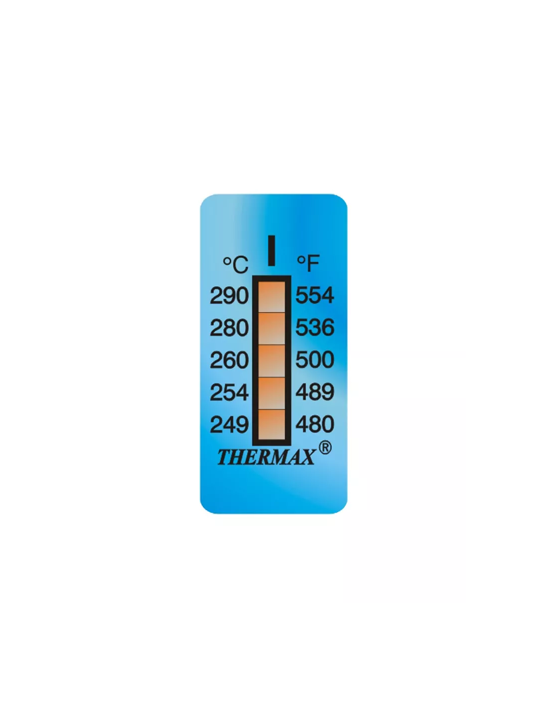 Ces indicateurs à 5 températures Thermax sont de simples mouchards sous forme d'étiquettes adhésives pour le contrôle de la température. Par simple changement de couleur, la gamme affiche la température atteinte entre + 37°C à + 290°C.