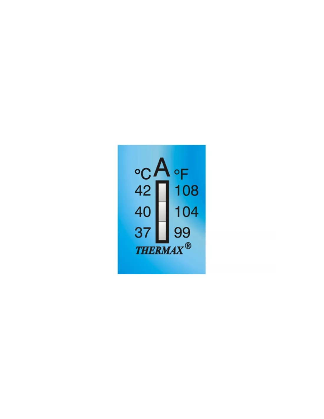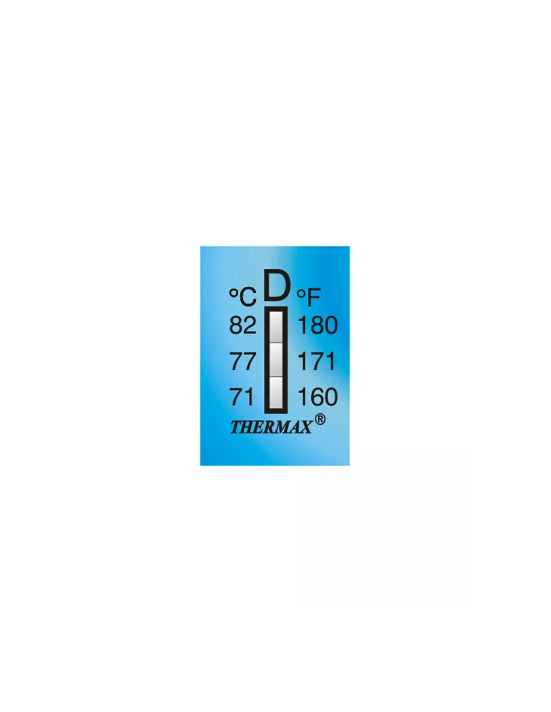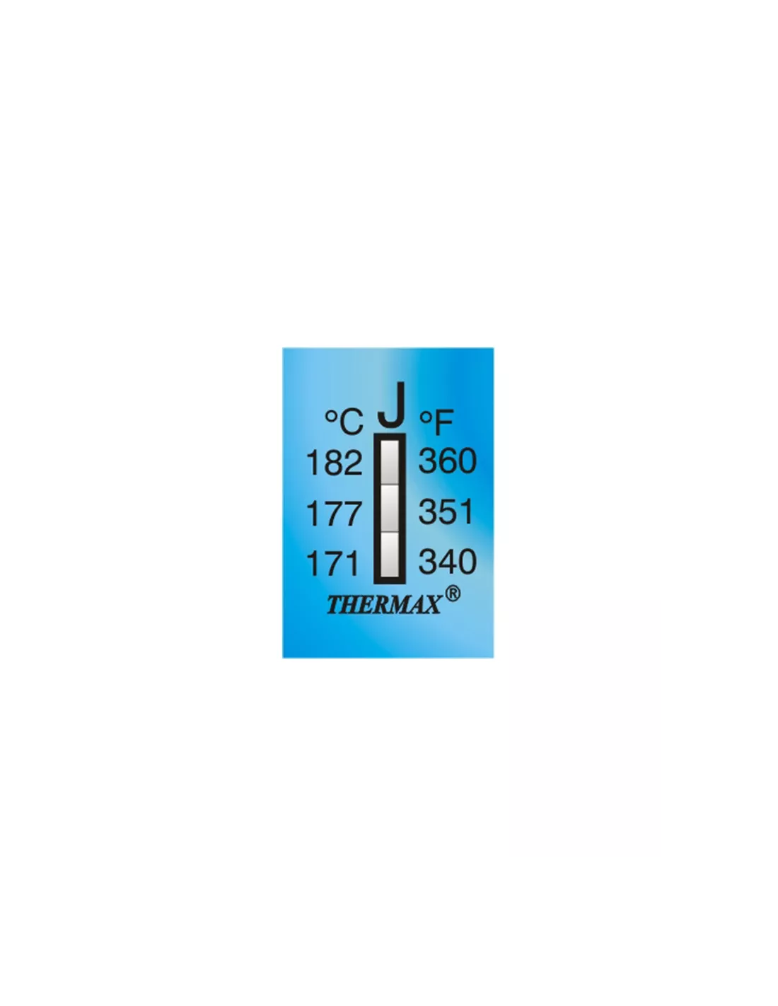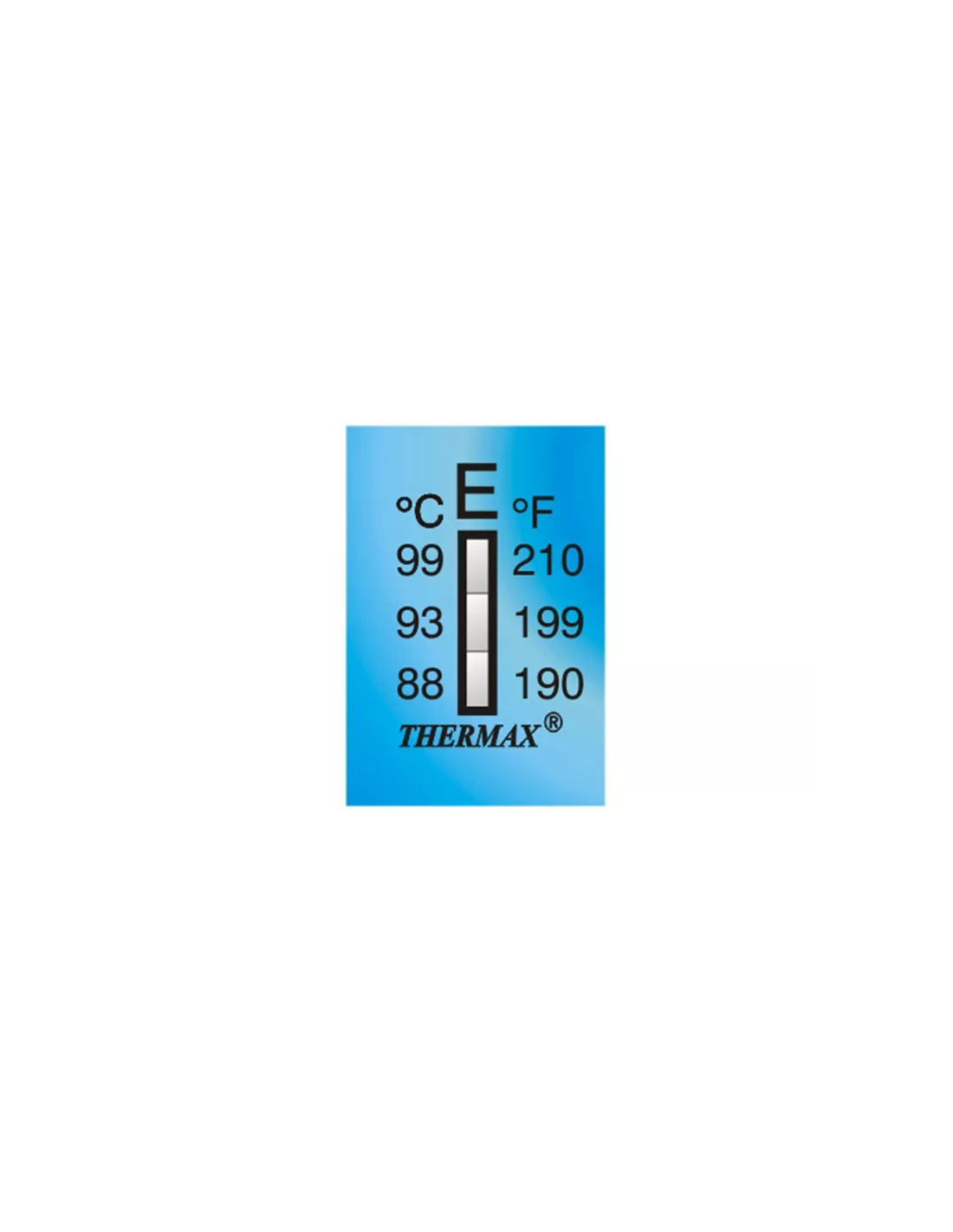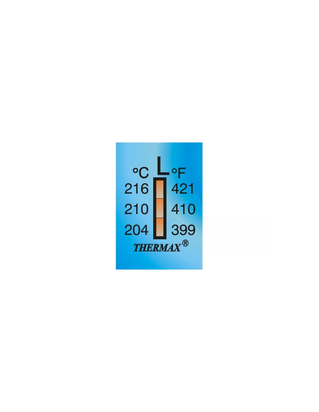 Les rubans irréversibles thermosensibles à 3 températures THERMAX se présentent sous forme d'étiquettes autocollantes verticales. Lorsqu'un palier est atteint, il change de couleur de manière irréversible. Le ruban thermomètre possède 16 gammes de +29°C à +290°C et 3 paliers de température. Conditionnement : 1 carnet contient 10 rubans indicateurs Commande minimale : 100 carnets