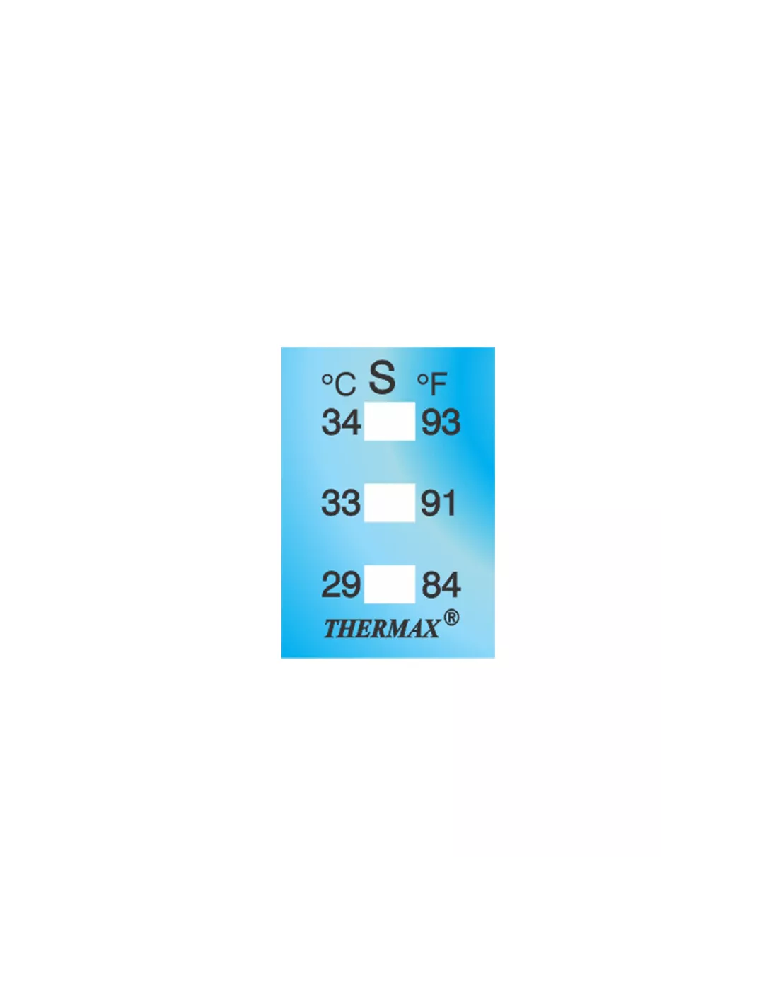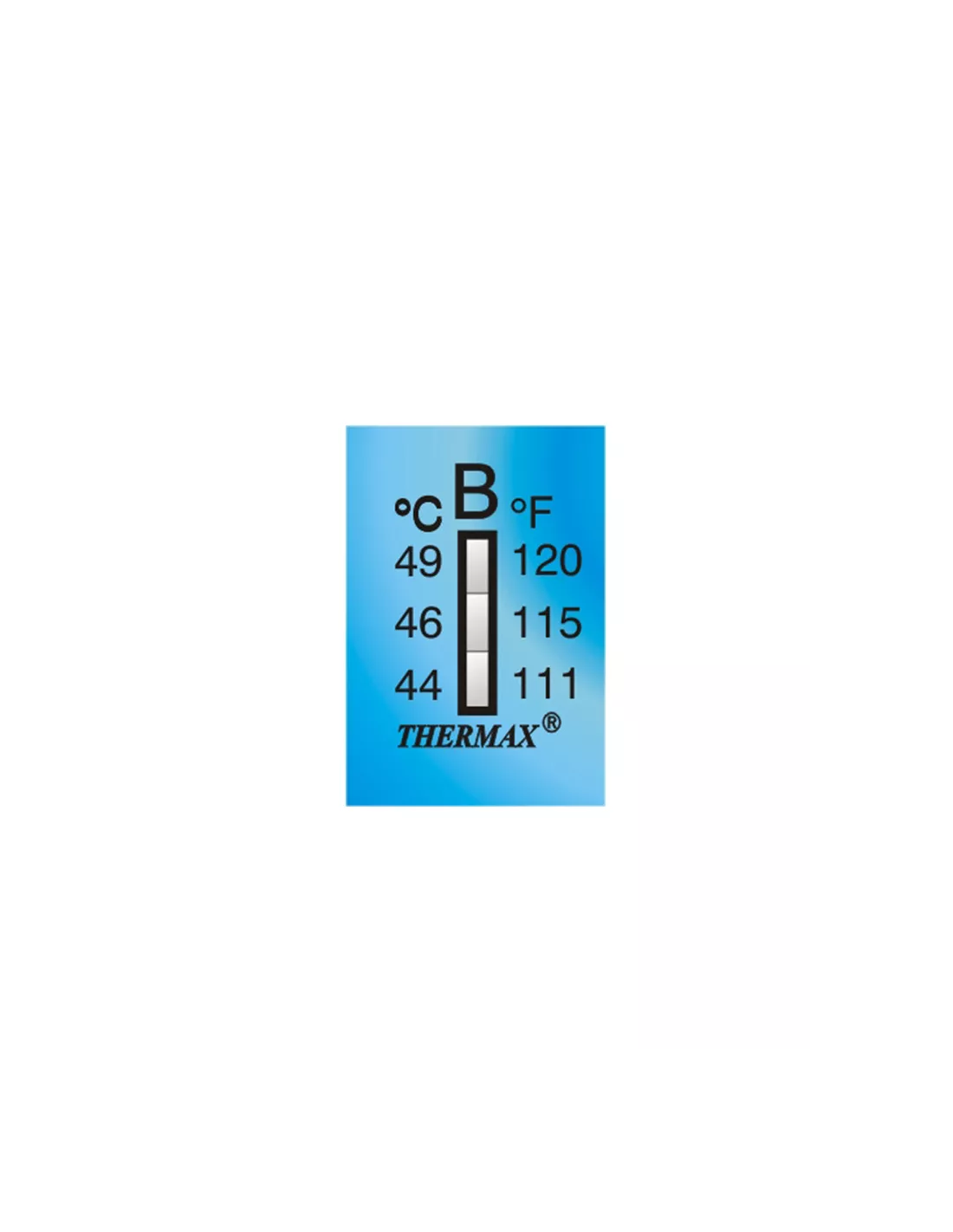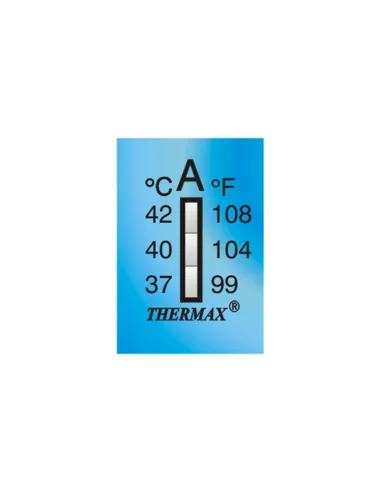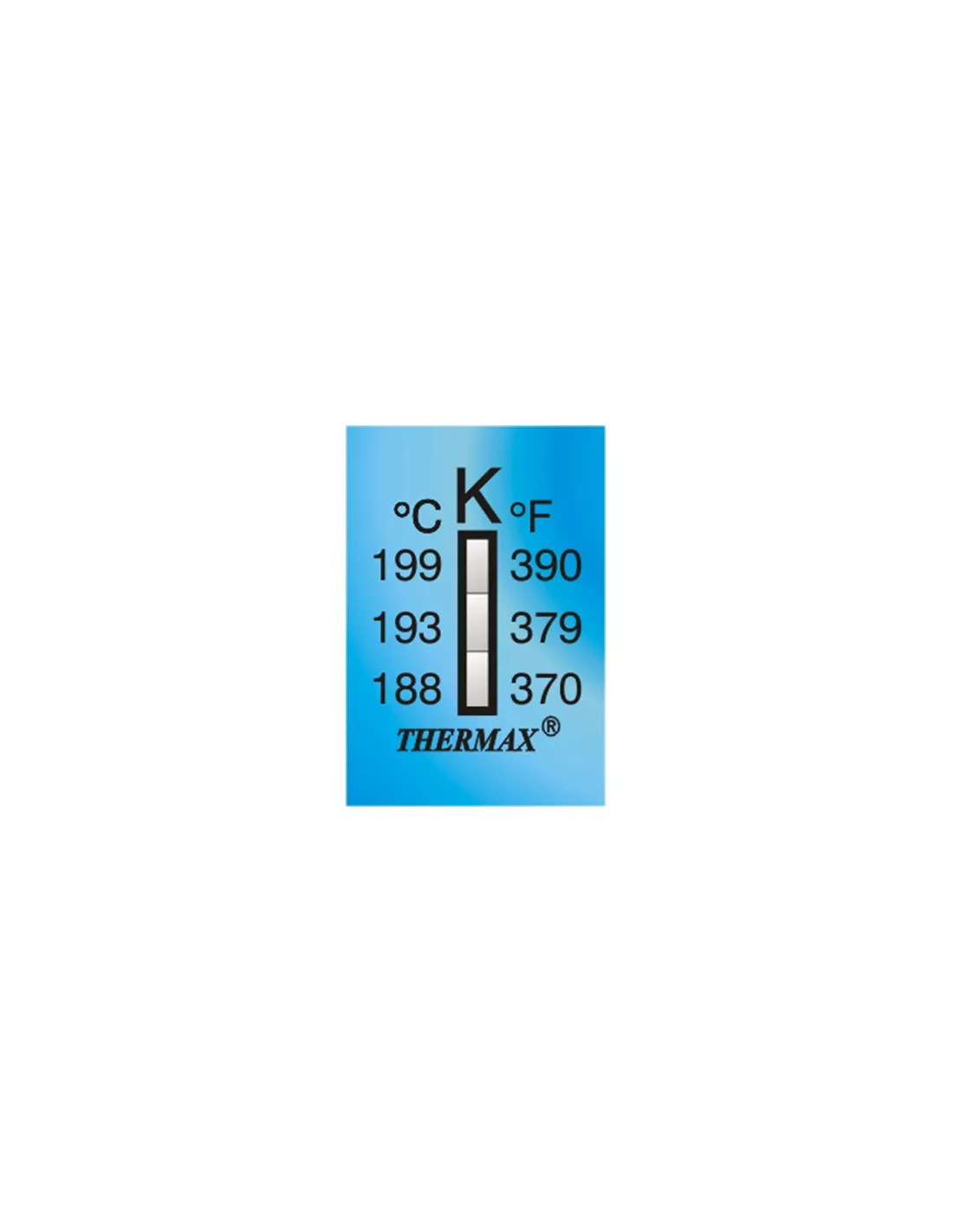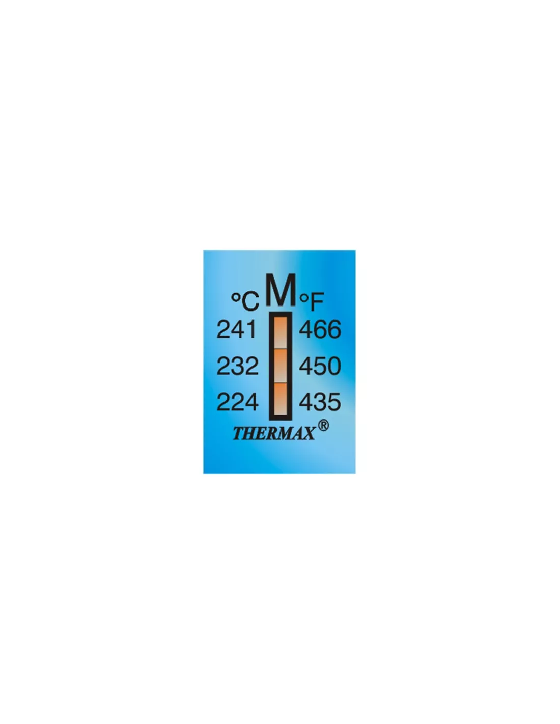 Les rubans irréversibles thermosensibles à 3 températures THERMAX se présentent sous forme d'étiquettes autocollantes verticales. Lorsqu'un palier est atteint, il change de couleur de manière irréversible. Le ruban thermomètre possède 16 gammes de +29°C à +290°C et 3 paliers de température. Conditionnement : 1 carnet contient 10 rubans indicateurs Commande minimale : 100 carnets