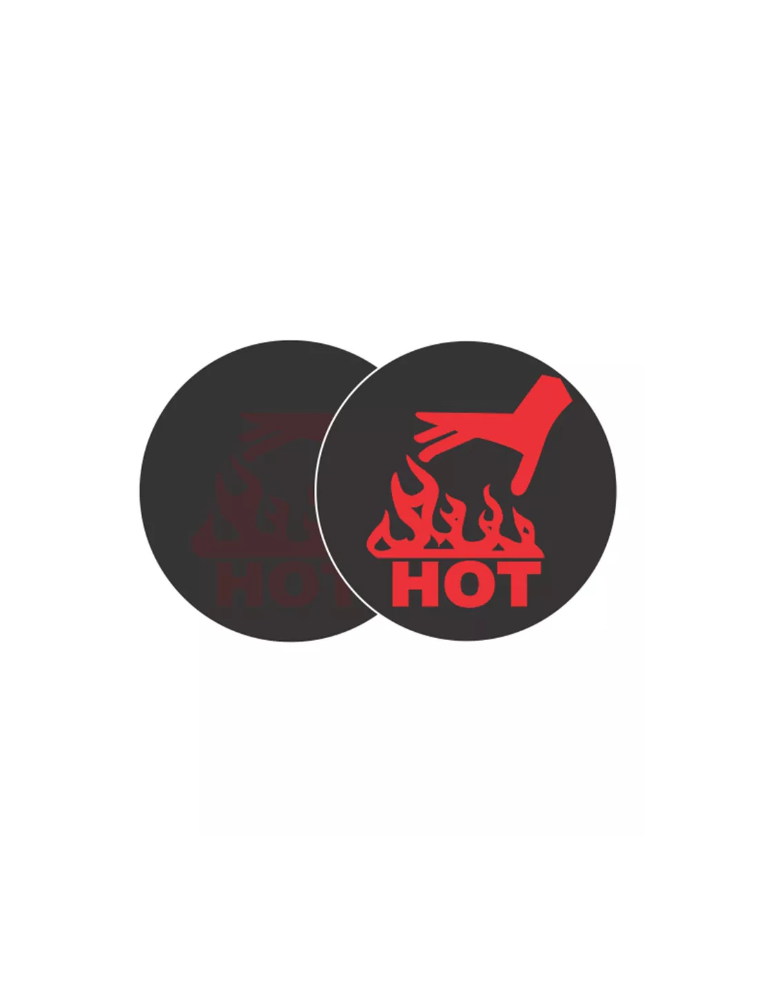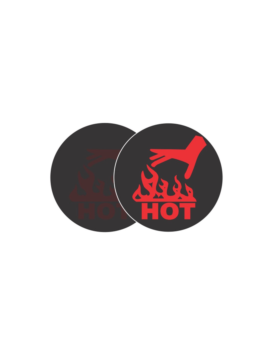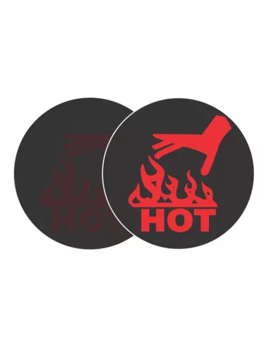 Les indicateurs ''main chaude'' sont adhésifs, ils se collent sur toutes les surfaces souhaitées. Une illustration et le mot "HOT" (chaud) apparaissent à partir d'une température de 50°C pour avertir du danger et éviter des brûlures potentielles.